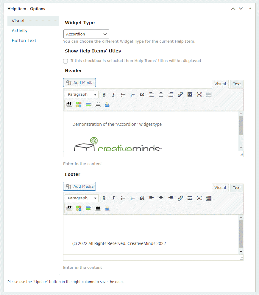 First, we have created the help items. You can see the example of one of them on the screenshot below: