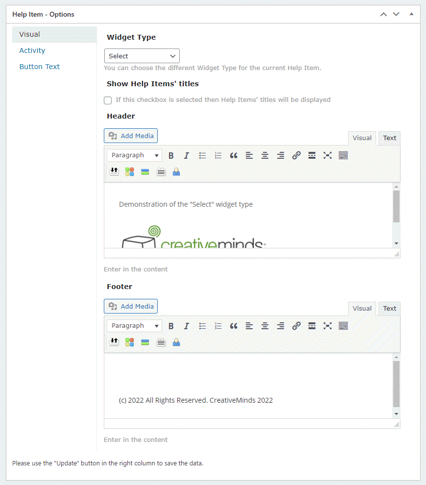 First, we have created the help items. You can see the example of one of them on the screenshot below: